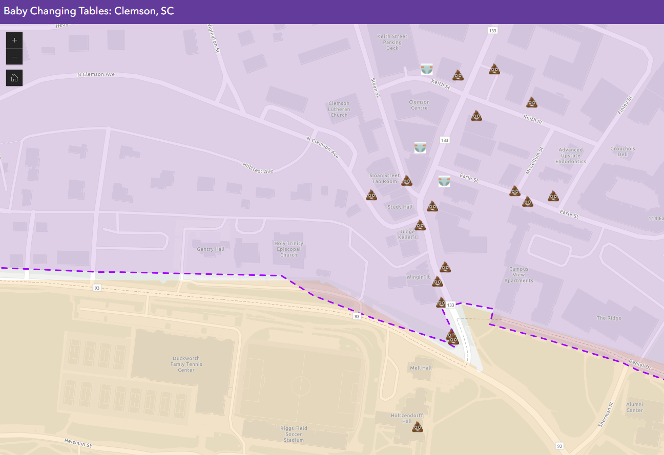 For an Intro to GIS assignment, I built a Survey123 form to build a map that identifies businesses/on-campus locations in Clemson, SC that have facilities for changing baby diapers.